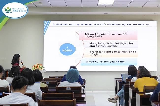 Through this scientific session, healthcare staff at Vietnam National Children’s Hospital gained additional knowledge to identify intellectual creative outputs in professional activities, better understand the regulations of the Law on Intellectual Property, delineate the rights and obligations of individuals and units, and grasp basic steps in registering for protection, managing, and exploiting scientific research outcomes. This activity also contributes to promoting innovation and enhancing the effective use of scientific achievements in the care and protection of children’s health.